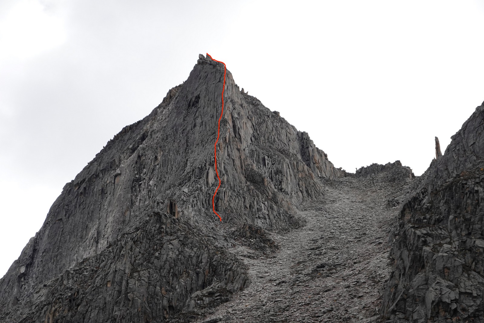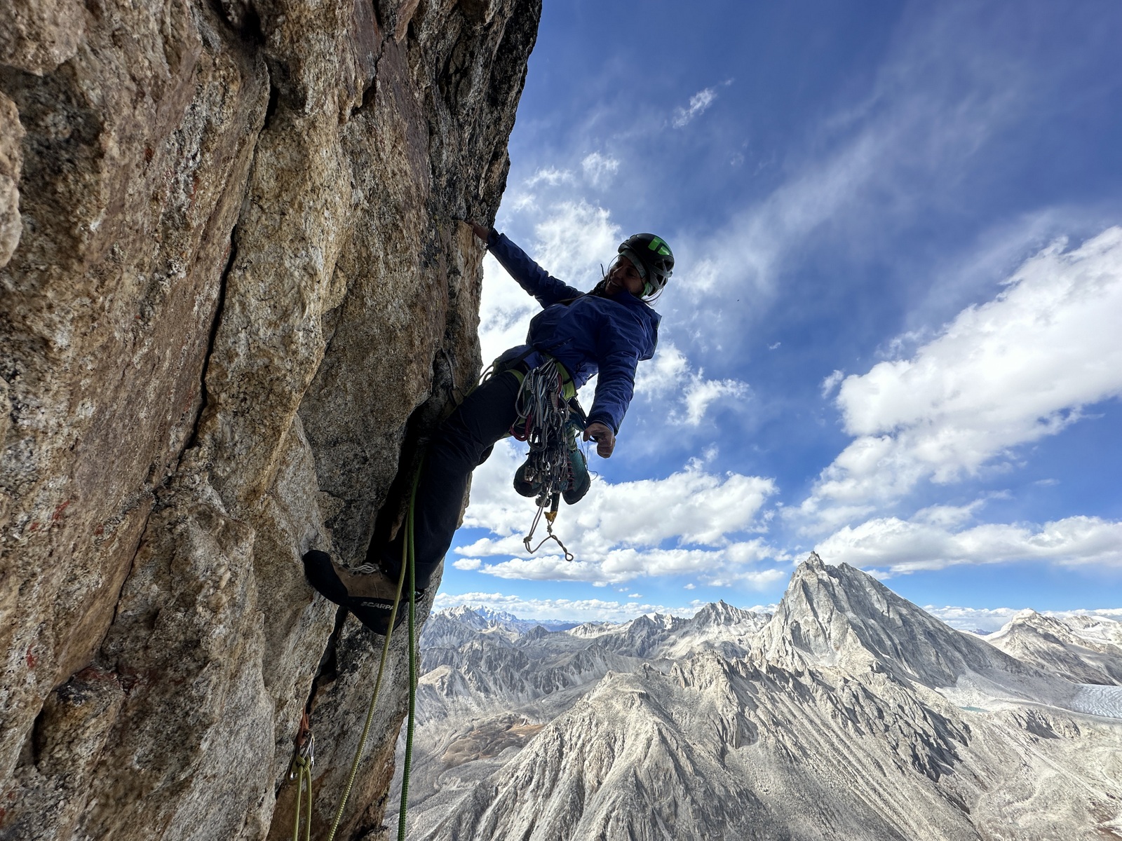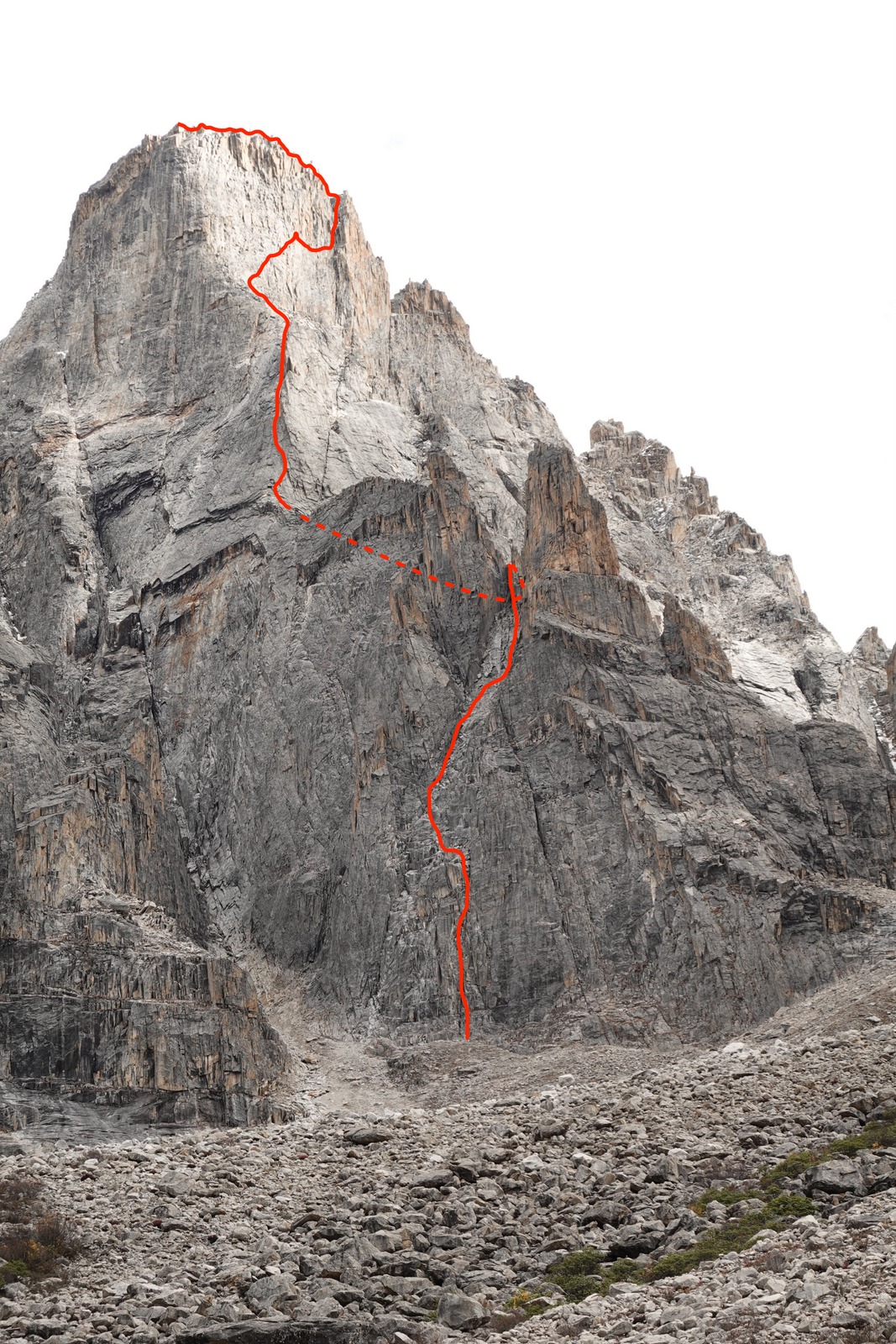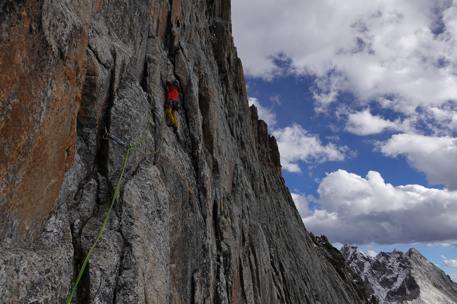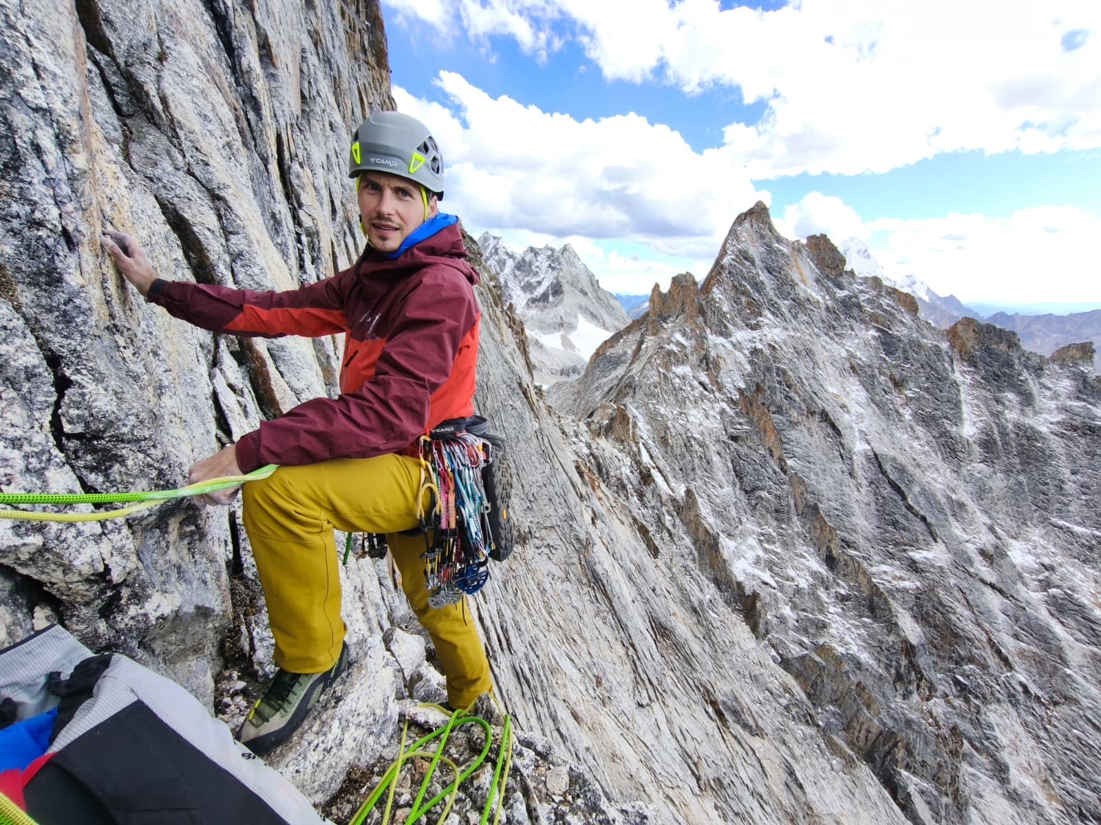 Strm raz, ki elegantno vodi na vrh direktno nad bazo, je bil odlična ogrevalna smer. Po nadležnem dostopu po strmem grušču in majavih blokih, naju je pričakalo približno 300 m višinskih metrov plezanja v večinoma dobri skali in tremi res lepimi raztežaji po strmih počeh in zajedah v zgornji peti težavnostni stopnji. Po preplezani prvenstveni smeri, ki sva jo poimenovala Spicy little fish sva imela s približno 5200 m visokega vrha odličen razgled na okoliške gore. Turo sva zaradi bližine baznega tabora izpeljala v enem dnevu. Med turo sva si ogledala naslednji cilj in v dolini, na poti proti le temu, pustila del opreme. Dva ali tri dni počitka v bazi je bilo dovolj, da sva se počutila dovolj spočita, predvsem pa aklimatizirana za bolj konkretno plezanje.