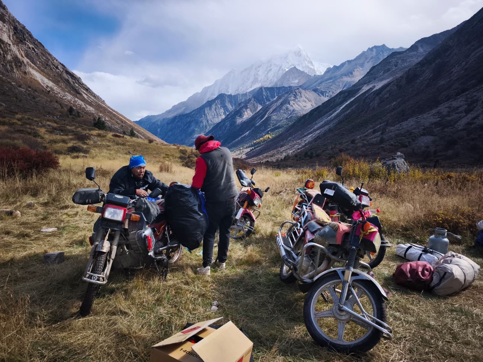 Popolnoma brez presenečenj kljub vsemu ni šlo. Najina pot do baze je bila v znamenju zastojev zaradi kolektivnih dopustov praktično celotne Kitajske v prvem tednu oktobra in vožnje z motorji do baznega tabora. V gore kamor sva se odpravila, ne poznajo nosačev, zaradi česar sva doživela nenavadno in nepozabno vožnjo po poti, kjer si je bilo težko predstavljati, da je takšen transport možen. Ko sva postavila bazni tabor na približno 4300 m nadmorske višine, sva se hitro ustalila v poznani rutini preprostega življenja v gorah. Takoj sva začela z raziskovanjem okolice in ugotovila, da so okoliške gore popolnoma brez ledu. Kombiniranih oziroma lednih linij, ki sva si jih nagledala doma, skoraj nisva mogla locirati. Kljub vsemu sva videla kar nekaj dobrih ciljev in se pripravila na prvo turo.