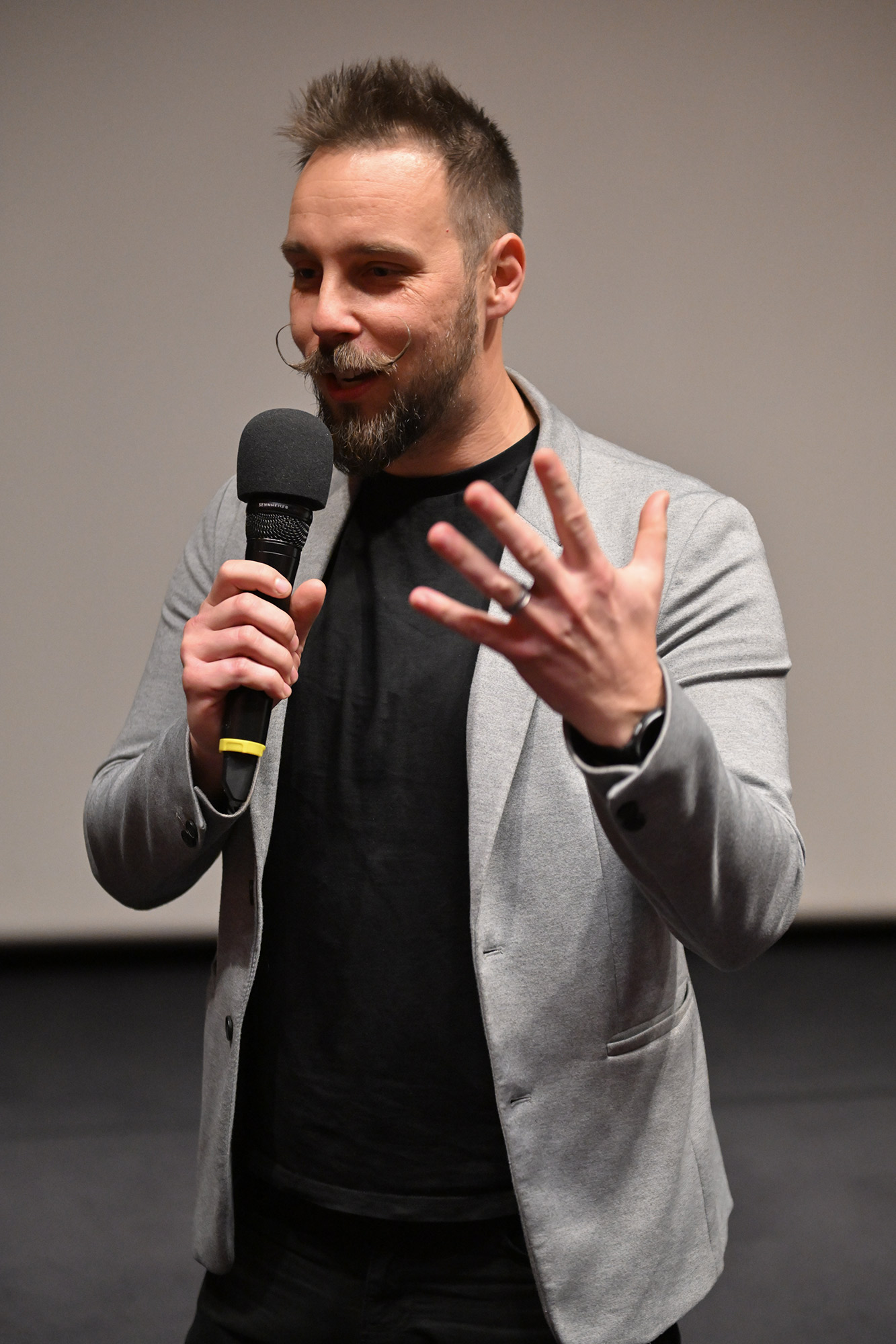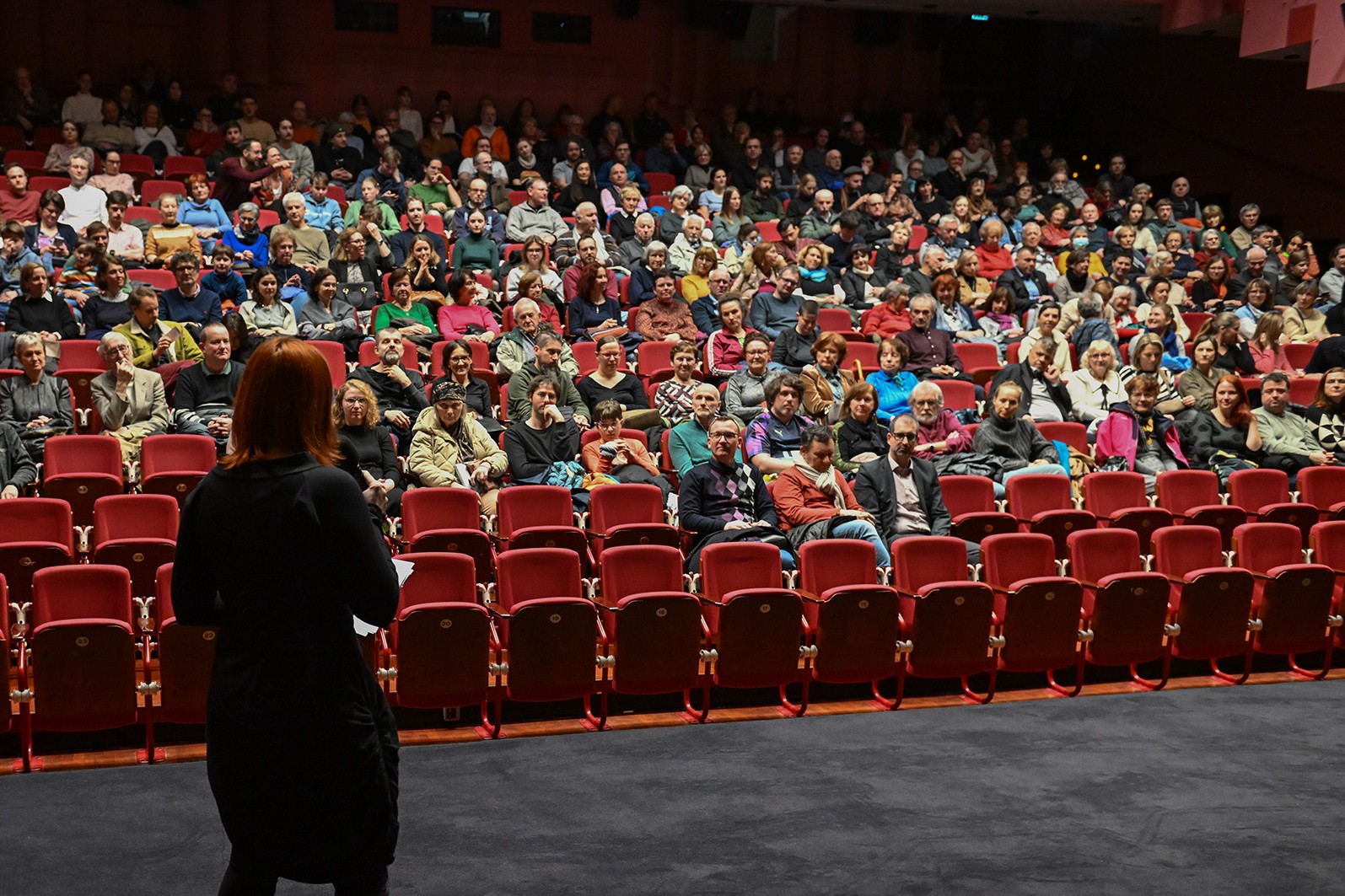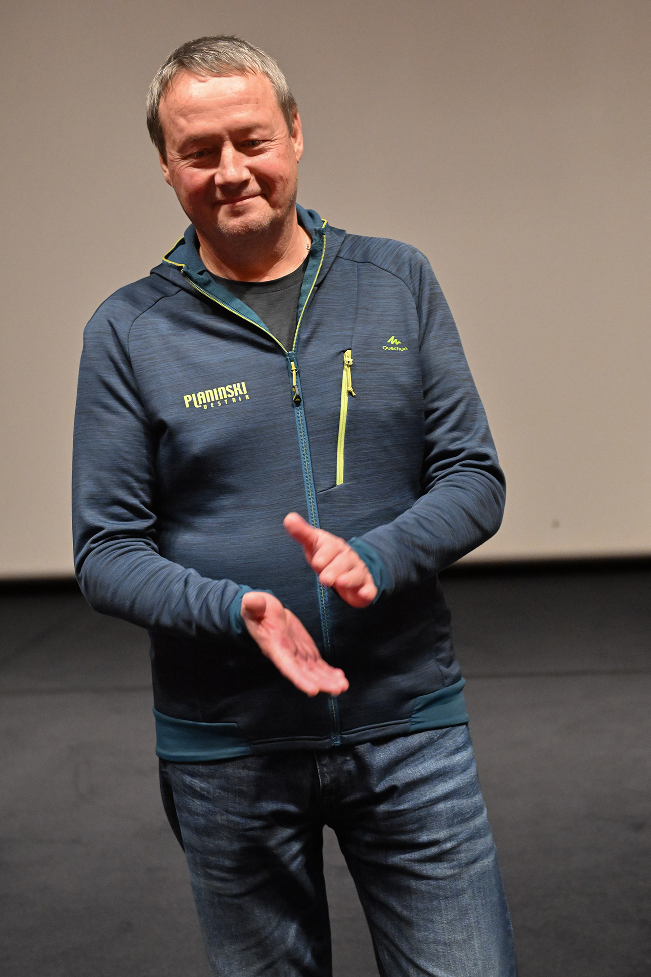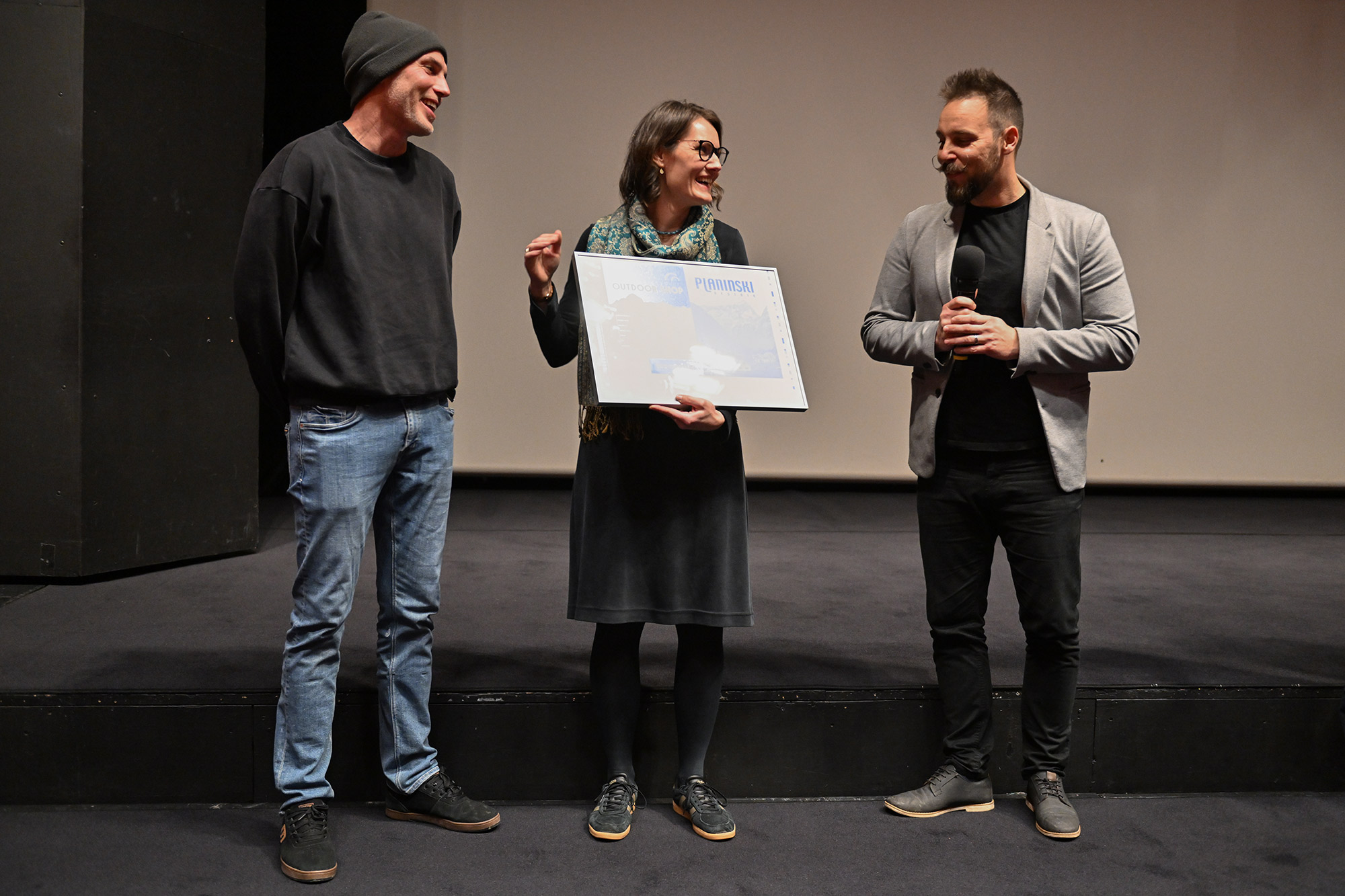 Sorežiserka Mojca Volkar Trobevšek, tudi scenaristka, producentka in organizatorka snemanja, je povedala, kakšen izziv je bilo usklajevati vse te vloge v času nastajanja filma, in da se ji je od srca odvalila triglavska skala, zdaj ko je film na svetlem, in to pred tako številnim občinstvom - hkrati pa se je zahvalila celotni srčni ekipi, kjer je prav vsak prispeval košček v končni filmski mozaik. Režijo sta si delila z Andrejem Podbevškom, ki je pojasnil, kako jim je iz filma, ki bi lahko bil precej dolgočasen dokumentarec, uspelo ustvariti zelo dinamično pripoved in kako so podobo revije prezrcalili v film. Skupaj s snemalcem in direktorjem fotografije Mitjo Legatom sta se Volkar Trobevšek zahvalila s posebnim spominskim darilom - uokvirjenim ozalidom Planinskega vestnika. Gledalcem so se predstavili tudi avtor čudovite filmske glasbe Simon Skalar, avtorica izvirnih animacij Ana Lucija Čuk in asistent na terenu Tine Trobevšek.