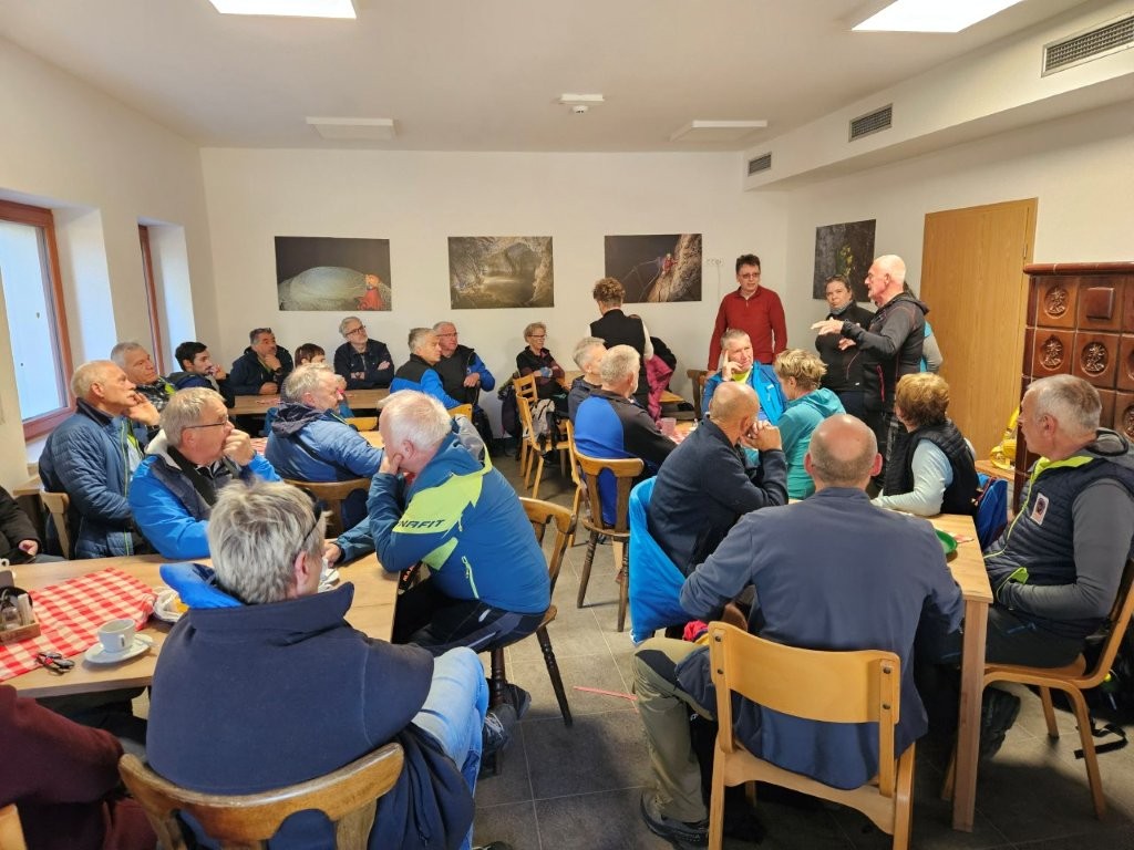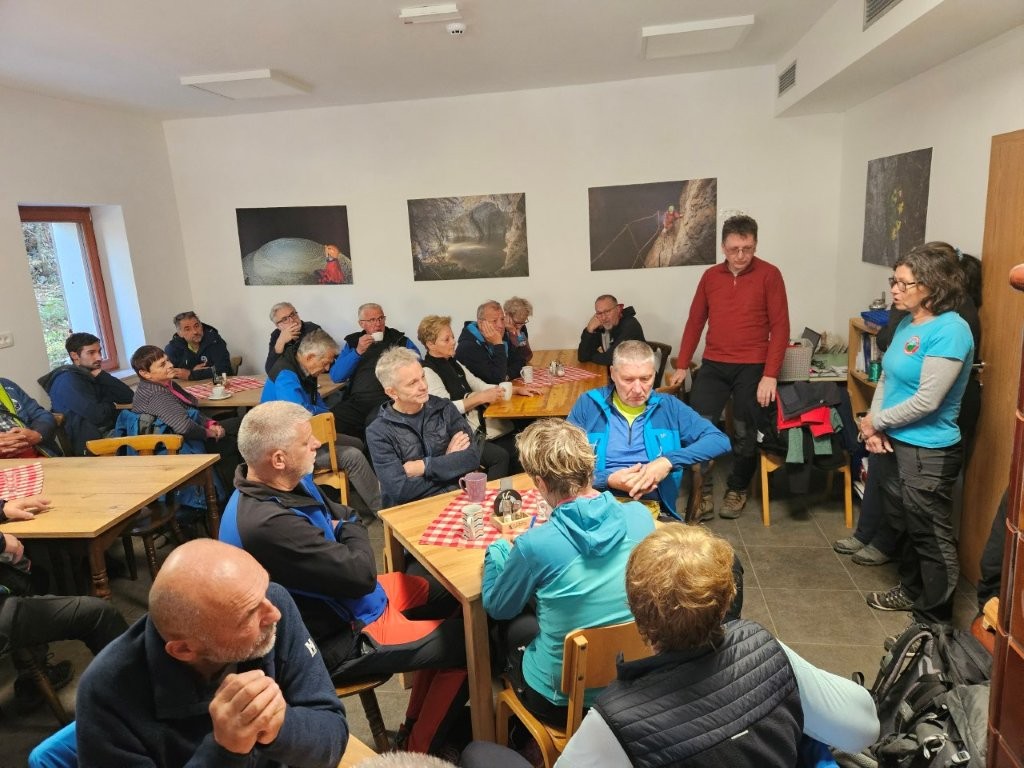 Gostitelji, Planinsko društvo Postojna, so udeležencem predstavili kočo in vse njene prenove v zadnjem obdobju, predvsem pa s katerimi izzivi so se soočali ob prenovah, ki jih je bilo kar veliko, a so jih uspešno reševali. Uvodna razlaga je potekala v skupnem prostoru oz. v jedilnici koče, sledil je ogled celotne koče.